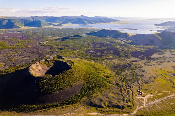 Volcan et lac Khövsgöl