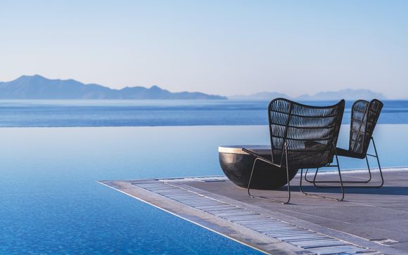 Panorama éblouissant et piscine à débordement face à la mer en demi-pension